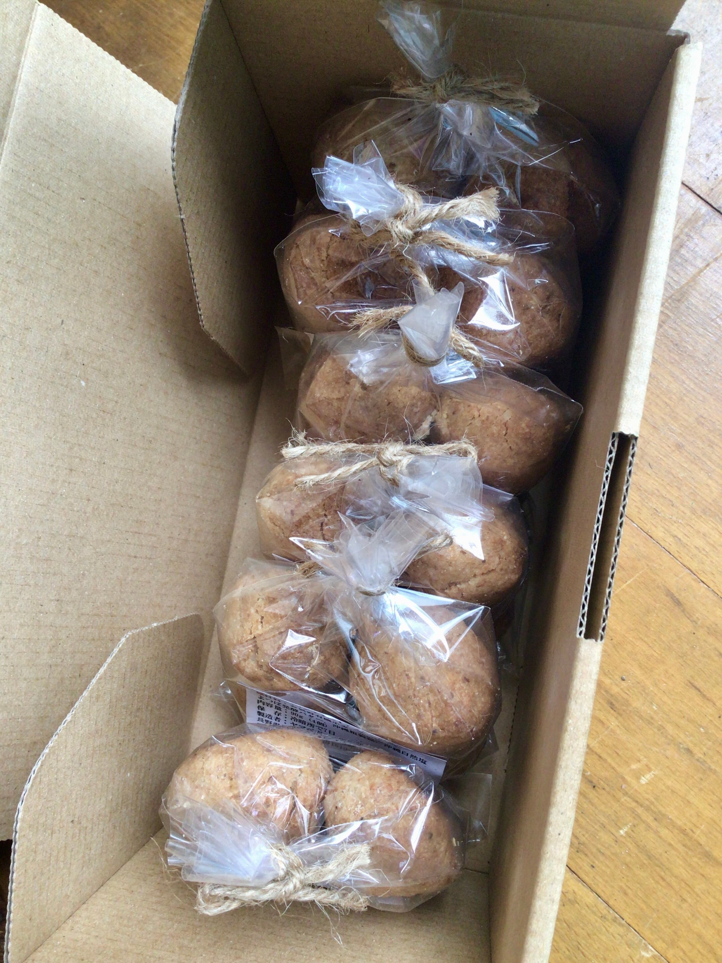 原材料:北海道産小麦、安曇野さまさまファームの有機全粒粉、北海道よつば発酵バター、国産米油、沖縄県産粗製糖、自然塩